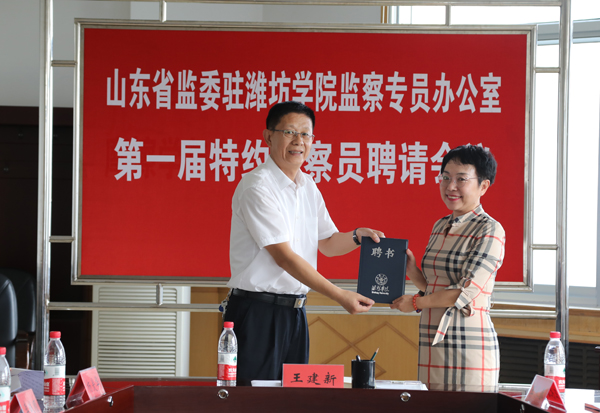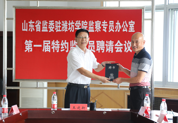 本网讯 9月25日,省监委驻潍坊学院监察专员办公室召开第一届特约监察员聘请会议,优选聘请7名特约监察员。学校党委委员、纪委书记、省监委驻潍坊学院监察专员王建新为特约监察员颁发聘书并讲话。