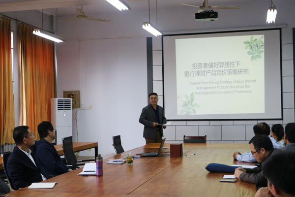 本次沙龙活动,刘伟博士主讲其近期撰写的论文《投资者偏好异质性下银行理财产品定价策略研究》。讲解过程中,博士们不时插话提问;讲解结束后,其他博士针对主讲内容讨论,博士郑明亮、王光荣、邢明青、李庆军、陈磊、周志刚、张帅、杨晓鹏、都晓岩、张敏、邵丹、吴玉轩等先后围绕内容结构、研究方法、调查内容和手段、研究结论等方面提出了针对性意见和建议。