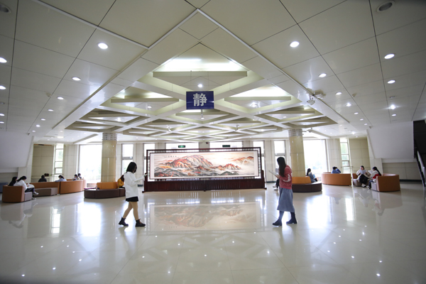 冯滨鲁一行实地察看了图书馆改善育人环境建设情况,参观了焕然一新的图书馆大厅、文化长廊、信息共享空间、“漫悦美”书吧、阅览室、书库、自修室等场所,听取了图书馆负责人的相关汇报,对图书馆育人环境的优化工作给予了充分肯定。