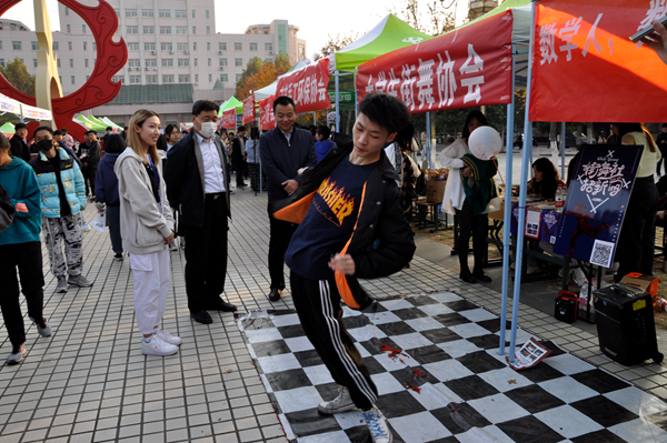 本网讯 11月6日下午,潍坊学院第十三届学生社团文化节——社团嘉年华在行政楼北广场和图书馆前广场拉开帷幕。学校党委副书记王清明在团委负责同志的陪同下深入现场指导社团纳新工作。我校校级社团和2020级新生参加了活动。