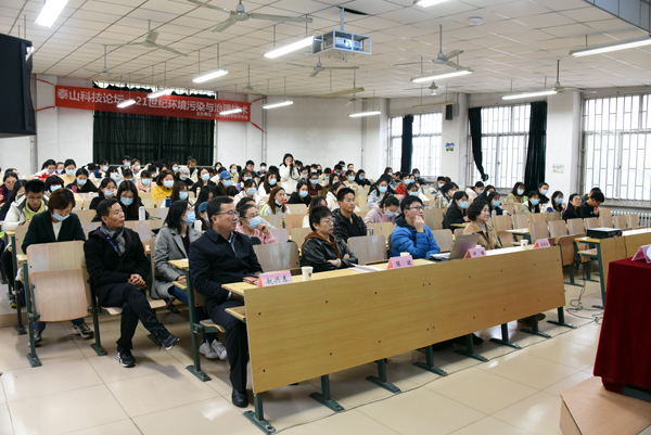 潍坊市生态环境局寒亭分局、潍坊诺正、潍坊星日环保、青岛赛飞特潍坊分公司等企业代表,校科研处相关人员及化学化工与环境工程学院教师、学生代表100余人参加论坛活动。