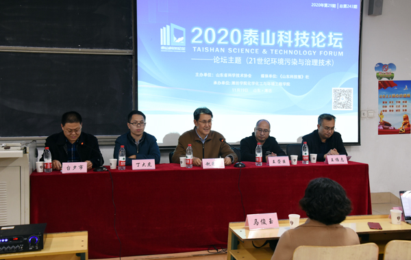 研讨会上,王崇臣教授和丁大虎副教授分别作了题为《MOFs及其复合物、衍生物:帮助环境》和《面向催化剂活性调控及有机污染物降解的环境催化反应机制》的专题报告。与会专家学者围绕固体废物资源化利用、21世纪环境污染发展趋势与治理措施、环境污染治理技术等问题进行了深入探讨与交流。本期论坛旨在利用泰山论坛的学术交流平台,拓展知识基础、促进不同背景的学者专家及企业代表之间的信息交流,在环境污染发展规律研究和控制方面取得一些学术交流和进步,以提高潍坊市在环境污染治理方面的认识和学术水平,并促进学者及环保企业合作,为开展企业科技创新提供思路和平台。