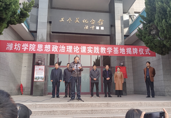 本网讯 11月28日,“潍坊学院思想政治理论课实践教学基地”揭牌仪式暨马克思主义学院党员党性教育活动在王尽美烈士纪念馆举行。马克思主义学院党总支书记陈子文,院长刘勇,副院长赵允福,诸城市退役军人事务局党组书记、局长孙业君等参加揭牌仪式。揭牌仪式由赵允福主持。