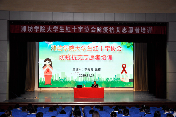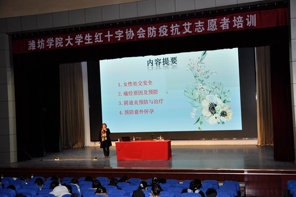 本网讯 11月27日,校医院为大学生红十字协会会员举办防疫抗艾志愿者培训。本次志愿者培训安排了2个讲座,分别是校医院医务部主任李秀霞大夫为志愿者讲授的“女大学生生理卫生知识与社交安全”,以及校医院公共卫生部负责人张栋大夫为志愿者讲授的“青年学生艾滋病防控知识”。