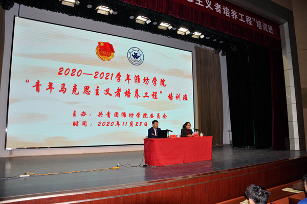 11月28日,我校2020-2021学年“青年马克思主义者培养工程”培训班开班暨首场报告会在图书馆报告厅举行。本次活动特邀山东省教育工委、潍坊市委宣传部党十九届五中全会宣讲员、潍坊学院马克思主义学院教授吕学山担任主讲嘉宾。本次活动由团委书记张晓静主持。2020级优秀团员共234人参加培训。