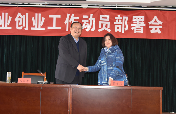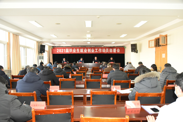 本网讯 1月6日,学校召开2021届毕业生就业创业工作动员部署会。党委书记李东出席会议并讲话。校长冯滨鲁代表学校与二级学院签订2021届毕业生就业工作目标责任书,副校长丁子信总结部署就业工作。