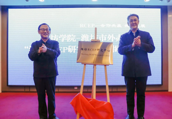 本网讯 为紧抓RCEP—区域全面经济伙伴关系协定签订机遇,深入研究相关重大课题,进一步推动潍坊与东盟10国及日本、韩国、澳大利亚、新西兰14个国家的务实合作,我校与潍坊市人民政府外事办公室共同发起成立“潍坊RCEP研究中心”。1月26日下午,潍坊RCEP研究中心揭牌仪式隆重举行。