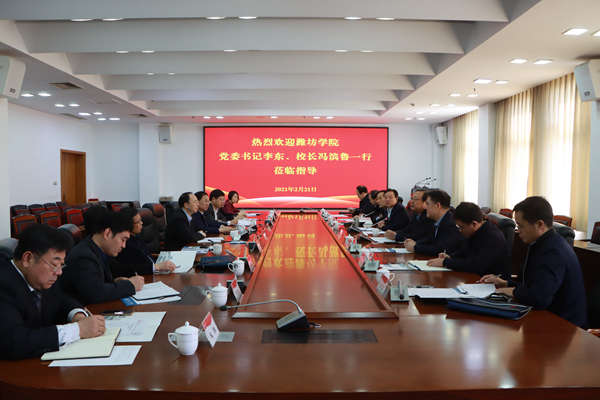 冯滨鲁从办学历史、校区建设、学校发展、办学成就等方面简要介绍了潍坊学院的基本情况,并对枣庄学院近几年的快速发展和取得的显著成绩给予高度评价。冯滨鲁表示,枣庄学院办学特色鲜明,产教融合协同育人工程成效显著,高素质应用型人才培养取得重要进展,先进的办学理念和办学特色值得潍坊学院学习,希望以此次交流为契机,今后进一步加强交流与合作,相互学习、相互促进、共同发展。