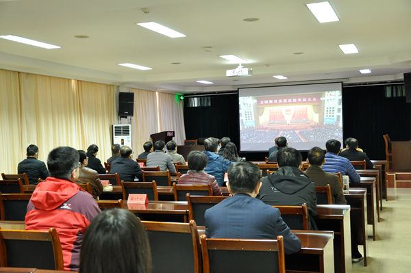 本网讯 2月25日上午10时,全国脱贫攻坚总结表彰大会在人民大会堂隆重举行,习近平总书记出席大会并发表重要讲话。学校领导班子成员及各管理部门主要负责同志在办公楼705会议室统一收看了大会直播,各中层单位和部门也都组织本单位党员干部群众通过网络、电视、广播等多种方式收看收听直播,并纷纷结合自身工作实际畅谈感想。