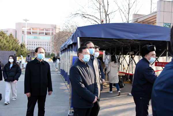 本网讯 2月27日学生返校报到首日,校领导李东、冯滨鲁、王清明来到学校北门、学生公寓、餐厅、校医院查看开学报到各项工作,现场了解疫情防控保障措施落实情况,并要求相关部门不断完善保障措施,确保圆满完成报到工作。