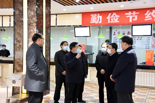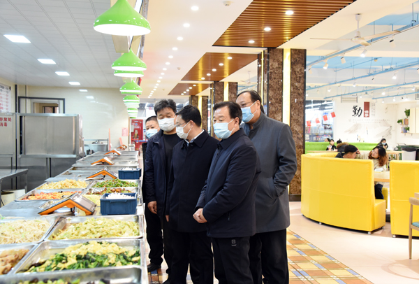 在学生餐厅,校领导了解学生就餐菜品供应、菜品价格、就餐环境等实际情况。要求总务处严把食品安全关、落实好防疫期间各项就餐措施,确保为广大师生提供质优价廉的饭菜。