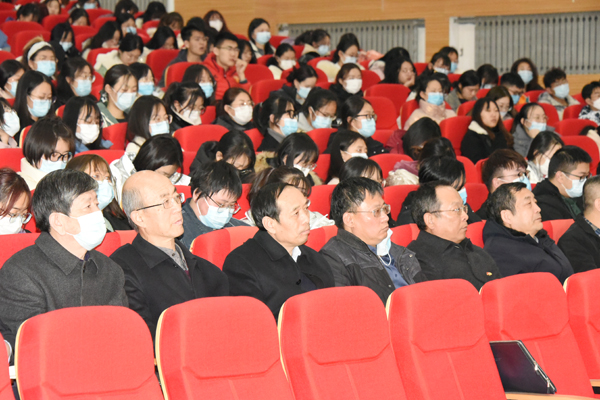 籍法俊教授从数学“几何”切入,以人类的“极限”探究为轴线,由古及今,引经据典,将看似枯燥的数学知识阐述得通俗易懂。籍教授通过数学发展史上的历史典故、数学研究的艰辛和我国科学技术研究的迅猛发展,鼓励同学们要正视人生发展的曲折,树立坚定的理想与信念,为国家发展、民族振兴谱写无限精彩的人生篇章。籍教授的精彩讲授,引发同学们的阵阵掌声,激发同学们的浓厚兴趣和对人生的深刻思考。