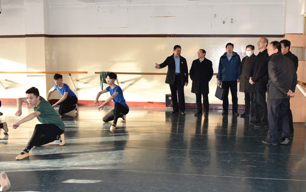 丁子信一行先后到教师教育学院、幼教特教学院进行实地查看,对有关功能教室的设计使用以及后续设备和物资的安置、管理等工作进行了沟通交流。丁校长还走进舞蹈课堂,观摩了幼教特教师范学院教师杨涛老师《中国民族民间舞》课程的教学活动。