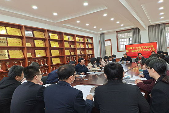 本网讯 3月11日,物理与光电工程学院召开第一届教职工代表大会第一次会议,学校工会副主席初咏梅,物理与光电工程学院23名代表参加会议。
