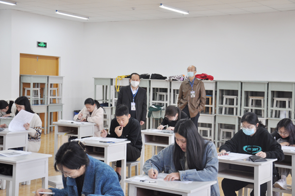 本网讯 3月27日,我校2021届小学教育专业公费师范生免试认定小学教师资格教育教学能力考核——综合知识测试工作,在安顺校区教师教育学院开展。副校长丁子信到各考场巡视考试情况。教务处、教师教育学院有关负责同志陪同进行巡视。