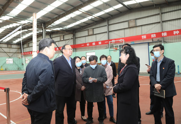 本网讯 3月29日,潍坊市副市长李平带领相关部门负责同志来我校检查新冠疫苗接种点的各项准备工作。校长冯滨鲁、党委副书记王清明陪同检查。