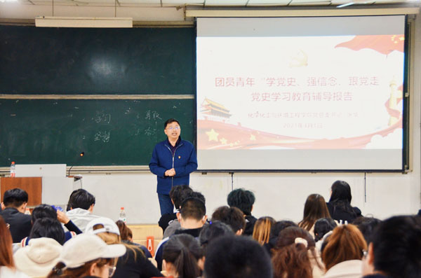 本网讯 为提升团员青年“学党史、强信念、跟党走”学习教育的质量,引导团员青年积极投身到党史学习教育中,4月1日,化学化工与环境工程学院举办团员青年“学党史、强信念、跟党走”学习教育辅导报告。党总支书记张华作报告,党总支副书记孙玉凤、全体辅导员以及学生代表等近200人一同聆听了报告。