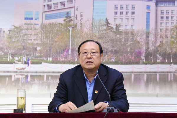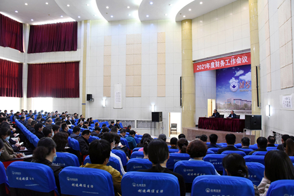 本网讯 4月14日,学校在行政楼报告厅召开2021年度全校财务工作会议,校长冯滨鲁主持会议并讲话。