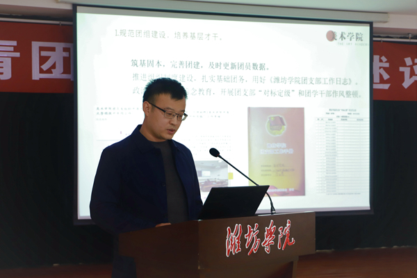 本网讯 4月13日,全校共青团工作交流与评述会在行政楼705会议室举行。学校党委副书记王清明出席会议,潍坊团市委副书记孙在前、山东交通职业学院团委书记杨曦受邀参加,学校新闻中心、团委相关负责同志参加述评会。全校21个学院团总支负责人作了述评交流。
