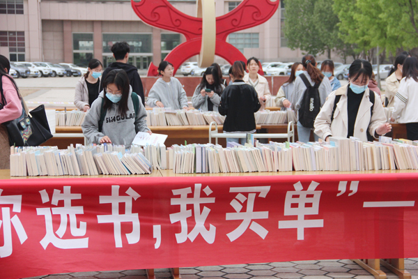 本网讯 为迎接第26个世界读书日,提高图书馆文献资源建设的质量,确保采购的图书具有专业性和针对性,4月21日图书馆邀请中标书商在图书馆前广场举办“你选书,我买单”读者荐购图书活动。副校长朱猷武参加了图书荐购活动。