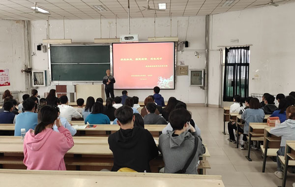 他还介绍了学院今年在考研方面取得的突出成绩,他说,团队式的学习方式会让学习效率大幅增加,每一名同学都要加入一个组织,借助组织的力量进行学习。同时介绍了学院在近年来科研、就业等方面的情况,进一步激发了学生们开展团队学习的动力。他希望全体同学在今后日常学习、工作、生活中充分发挥模范带头作用,将集体利益和人民利益放在首位,做到吃苦在前、享乐在后,不计较个人得失,放大人生格局,在实践中深刻领会“以人民为中心”的发展理念,不断提升思想觉悟和思想境界。