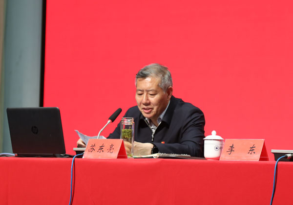 报告会上,苏东亮围绕深入学习领会习近平总书记关于党的历史的重要论述,充分认识开展党史学习教育的重大意义;认真研读党史基本著作,全面了解中国共产党百年奋斗的光辉历史和历史性贡献;深刻把握开展党史学习教育的重点;学懂弄通做实习近平新时代中国特色社会主义思想四个方面,紧密结合许多生动珍贵的党史资料,进行了精彩讲解。报告站位高远、内容丰富,思路清晰、论述透彻,具有很强的理论性、思想性和指导性,对于大家深刻领会开展党史学习教育的重大意义、准确把握党史学习教育的基本要求和重要内容,扎实有效地开展好我校的党史学习教育,具有重要的指导意义。