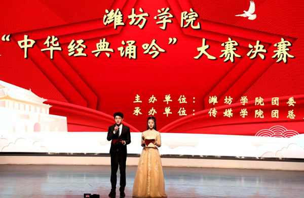 本网讯 为庆祝建党100周年,弘扬中华红色文化经典,进一步增强师生的爱党爱国情怀,由学校团委主办、传媒学院承办的“学习中华经典,传承红色基因”中华经典诵吟大赛决赛,于5月19日晚在图书馆报告厅落下帷幕。
