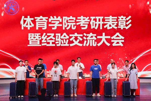 本网讯 5月27日,体育学院2021年考研表彰暨经验交流大会在图书馆报告厅举行。副校长赵光强出席会议并为受表彰学生颁奖。体育学院班子成员、全体辅导员和教师代表参加会议。