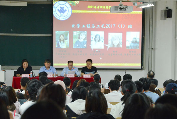 王林同宣读了《化学化工与环境工程学院关于表彰2021届毕业生中考研录取同学的决定》。随着表彰决定的宣读,72名2017级考研录取同学的大幅照片和姓名、录取学校一起出现在大屏幕上,他寄语考研录取同学要把“顽强拼搏勤奋向上”的良好品格带到以后的求学生涯中。
