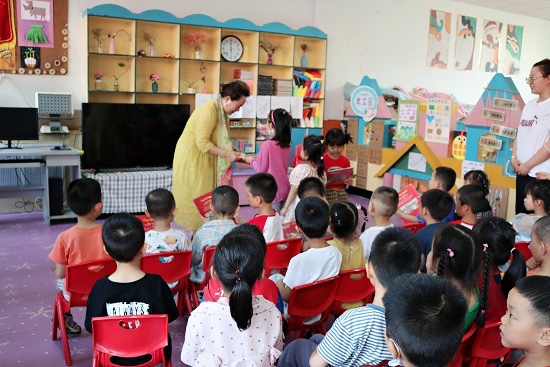 本网讯 6月18日下午,庆祝中国共产党成立100周年宣传教育活动暨向幼儿园赠书仪式在幼教特教师范幼儿园举行。学校工会党支部、招生就业处党支部、国有资产管理处党支部负责同志、幼教特教师范幼儿园负责同志以及幼儿园部分教师代表参加了活动。