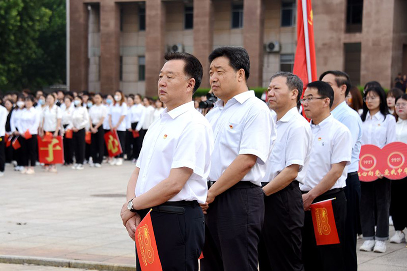 本网讯 为庆祝中国共产党建党100周年,引导潍坊学院学生坚定奋斗方向,永远听党话、感党恩、跟党走,7月1日,学校举行“潍院学子心向党”——庆祝中国共产党成立100周年”升国旗主题教育活动。校党委书记李东,党委副书记王清明,党委委员、党委组织部部长李连成,党委委员、党委宣传部部长单振涛出席活动。