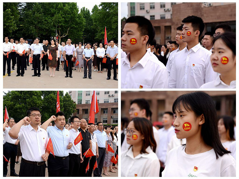 全体师生党员面向鲜红的党旗重温入党誓词,铿锵有力的宣誓声响彻校园。