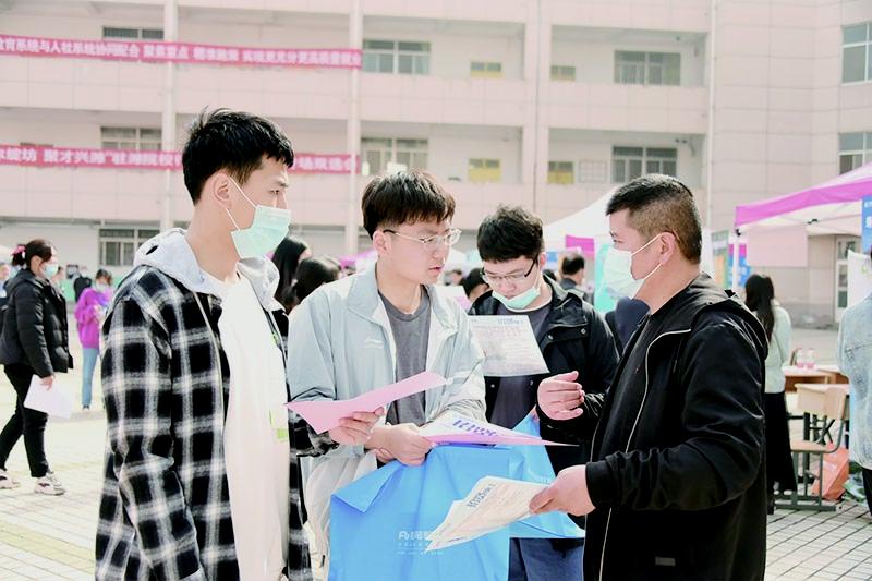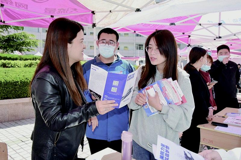 请进来,专场招聘促高质量就业一顶顶红色帐篷、一张张木质桌子整齐排列,帐篷前人群熙攘,工作人员拿着宣传单介绍着企业的情况———学校2021 届毕业生春季校园招聘会如火如荼地展开。天一楼、至善楼、致远楼……自 3 月初,在招生就业处的组织调度下,各二级学院党总支积极行动起来,积极开拓多元化就业渠道,结合当前就业形势与就业工作实际,聚焦重点,精准施策,密集开展系列校园招聘活动,为学生提供更多高质量的就业岗位。