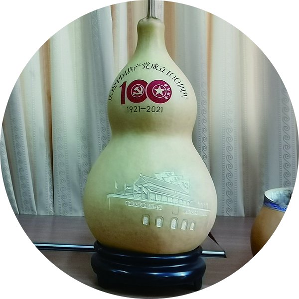 与此同时,从寿光烙画室赶来的付培龙、李祥老师带着工作室最新的烙画作品到达了现场。在中国的传统文化中,葫芦因为有着“福禄”的谐音,常被人们当做吉祥物,葫芦也是烙画最为常用的材料,经济管理学院的程雪莹带来了自家种植的葫芦,为参加活动的同学义务提供绘画材料。