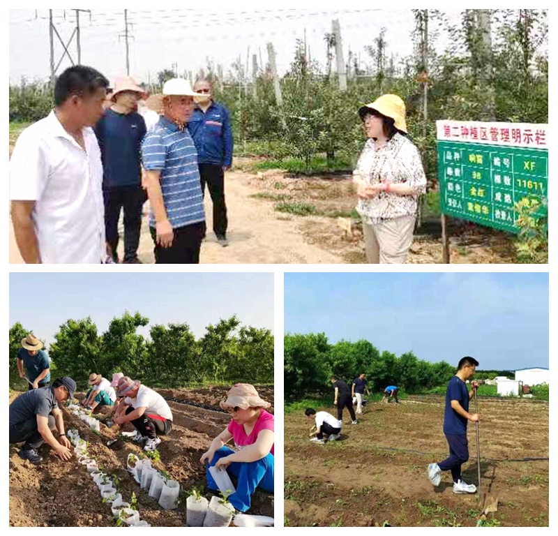 烈日炎炎,曹慧教授和她的科研团队依然奋战在田间地头。为了保证国家自然科学基金面上项目“不同苹果砧木和施氮水平下砧木-接穗-土壤系统碳氮流的定量分析研究”顺利进行,曹慧带领其科研团队利用假期持续开展相关研究工作。该团队还利用假期到潍坊景海果业有限公司、潍坊鑫润果蔬专业合作社、临朐鑫润果蔬种植专业合作社等农业企业进行技术指导与交流,了解企业在生产中遇到的困难以及对新品种、新技术的需求,寻找合适的切入点,积极开展横向课题研究,加速企业转型升级,以科技创新助力乡村振兴。