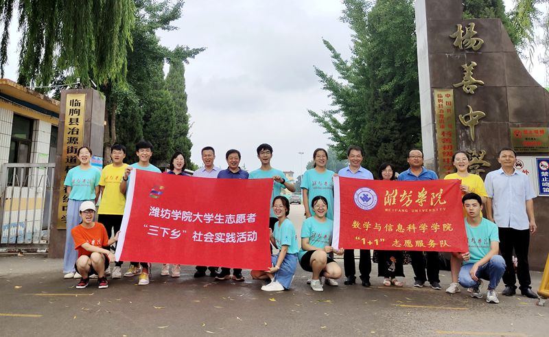 本网讯 为深入学习贯彻习近平新时代中国特色社会主义思想,积极响应大学生暑期“三下乡”社会实践活动的号召,为乡村教育发展注入新的活力,2021年7月18日-7月31日,潍坊学院数学与信息科学学院“1+1”志愿服务队在临朐县杨善初级中学开展了“党史心中记,振兴人人行”为主题的“三下乡”社会实践活动。