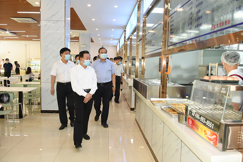 在新装修开业的弘德书院祎宏餐厅,李东、冯滨鲁一行向餐厅负责人重点了解了餐厅的装修改造情况、特色窗口运行和菜品种类等,详细察看了餐厅结构布局、环境卫生等基本情况。李东对餐厅的改造效果表示满意,对假期坚守工作岗位的同志表示感谢。他要求后勤部门和餐厅负责人要切实提高认识,坚定不移抓好食品安全工作,特别是从源头上控制食材质量;要认真做好调查研究,确保绝大多数学生在校内就餐,保证学生的身体健康。