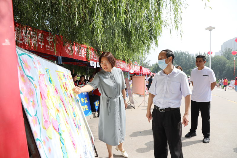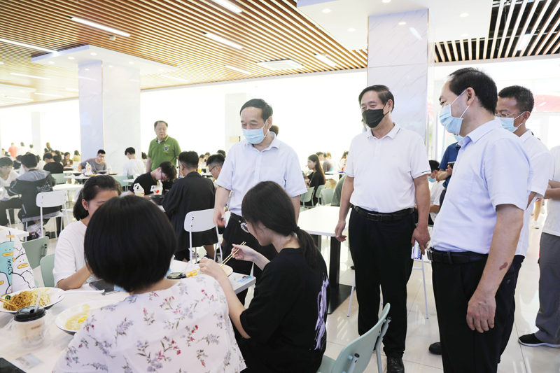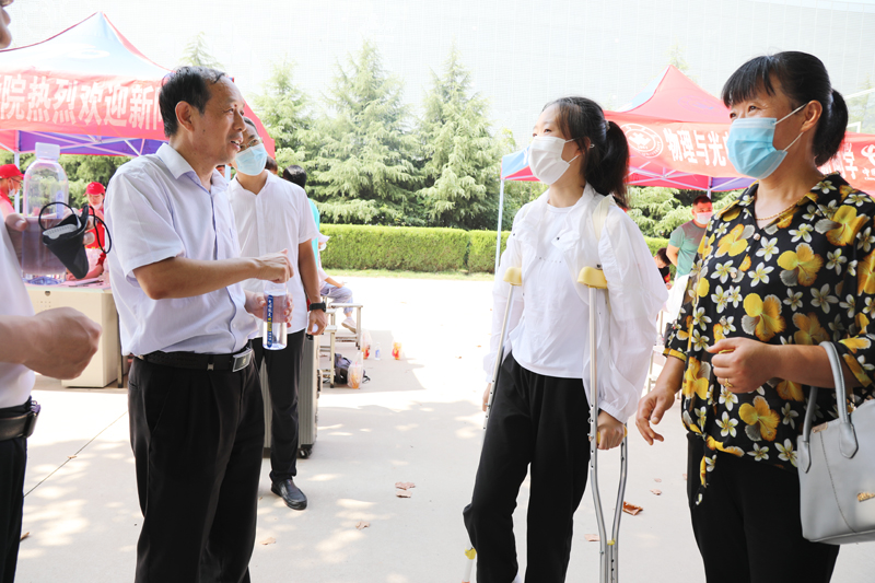 学校副校长丁子信在办公室、招生就业处、学生处、团委、保卫处等部门负责同志以及相关负责同志的陪同下,到迎新现场、学生公寓、学生餐厅,了解新生报到情况,查看后勤服务保障工作,并与学生亲切交流。