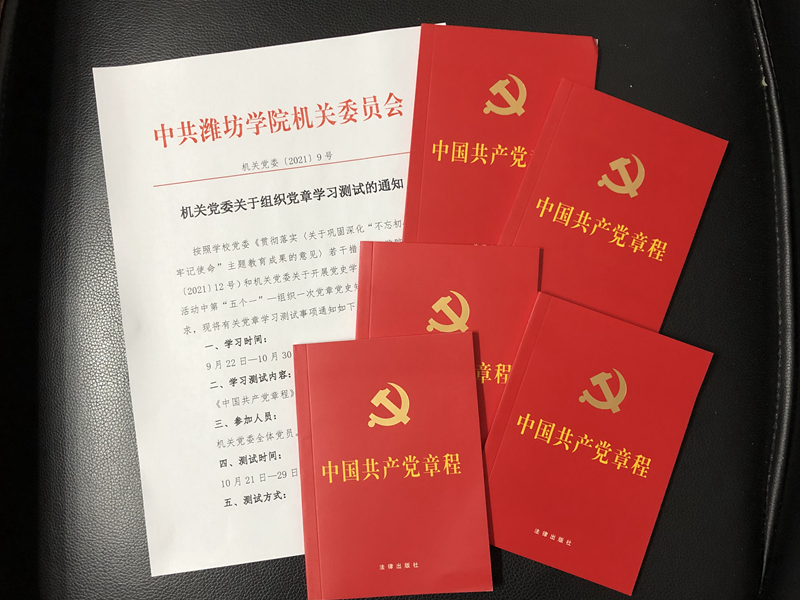 本网讯 9月22日,按照《贯彻落实〈关于巩固深化“不忘初心、牢记使命”主题教育成果的意见〉若干措施》和机关党委关于开展党史学习教育“七个一”活动中第“五个一”—组织一次党章党史知识测试的相关要求,机关党委决定在全体党员中组织党章学习测试。