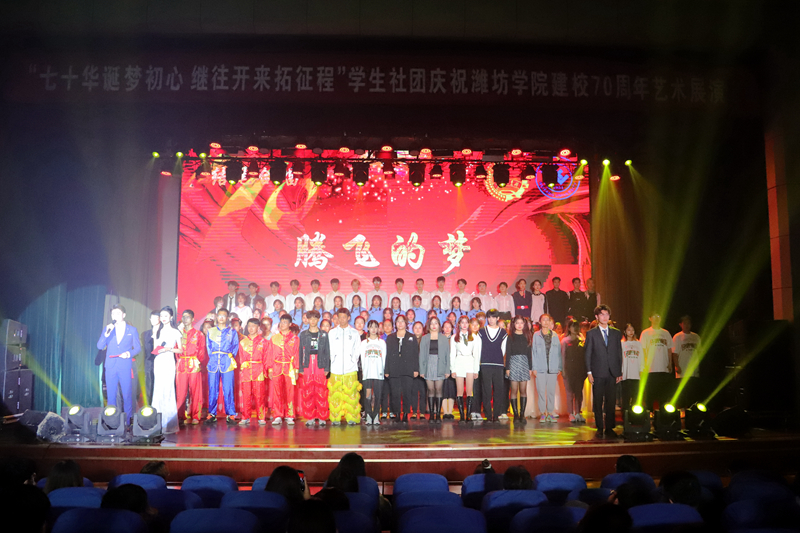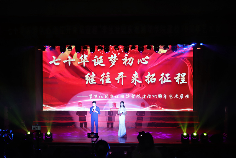 青春逢盛世,奋斗正当时。我校学生社团在学校党委的领导和团委的具体指导下,规范健康发展,他们以艺术展演的形式向学校70周年校庆献礼,充分展现潍院学子昂扬奋进的精神风貌!七十载丹心励耘,七十载立德树人,潍院在“厚德、博学、求是、创新”的校训中育桃李芬芳,弦歌不辍。七十载征程赓续,千万里鲲鹏正举,新的历史篇章已然翻开,愿你我共赴似锦前程!