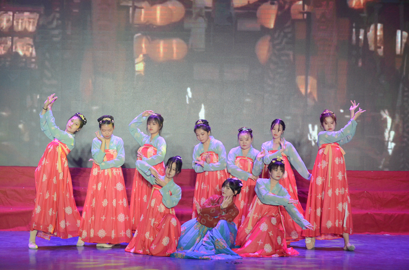 此次展演分《欣逢》《奔赴》《绽放》三个篇章,多方面展现各个社团思想与文化交流碰撞的独特风采,共同唱响潍院青春故事。晚会在大学生武术协会《武社律动》精彩的舞狮表演中拉开序幕。心铃协会将《党的赞歌》以朗诵的形式,诉说着潍院学子对党和国家的初心与热爱。“我们要呐喊,喊出我们内心炽热的信仰,让我们在党的正确领导下,从现在的胜利走向未来的辉煌”,铿锵有力的话语将潍院学子对祖国的赤诚、报效祖国的决心表现得淋漓尽致。kc舞社、跨文化研究交流中心与鸢飞汉服社将传统文化与现代元素相结合,为观众带来一场精彩的舞蹈串烧,舞者们激情四溢,洋溢着青春的舞步,如同今朝的潍院正意气昂扬、阔步向前!