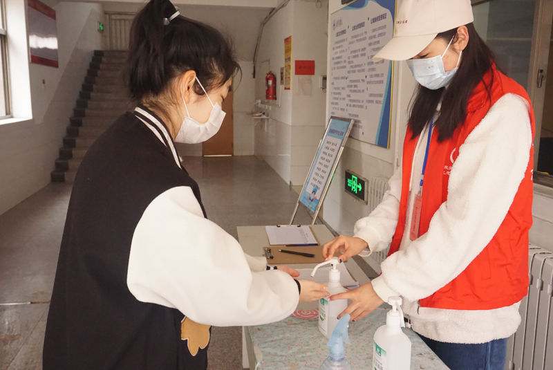 作为人员聚集地之一,在此关键时期,如何疏散超市的人员显得尤为重要。志愿者采取了维持流量的方案进行管理,全程超市内的购物人员不超过十人,并且设置“超市候场区”,安排志愿者进行安抚和监督。“校园安全稳定巡查小组”还在学生公寓、洗浴中心、洗衣房、开水房、操场等场所进行巡查,提醒同学们佩戴口罩,洗衣服、接水都要间隔一米进行排队。