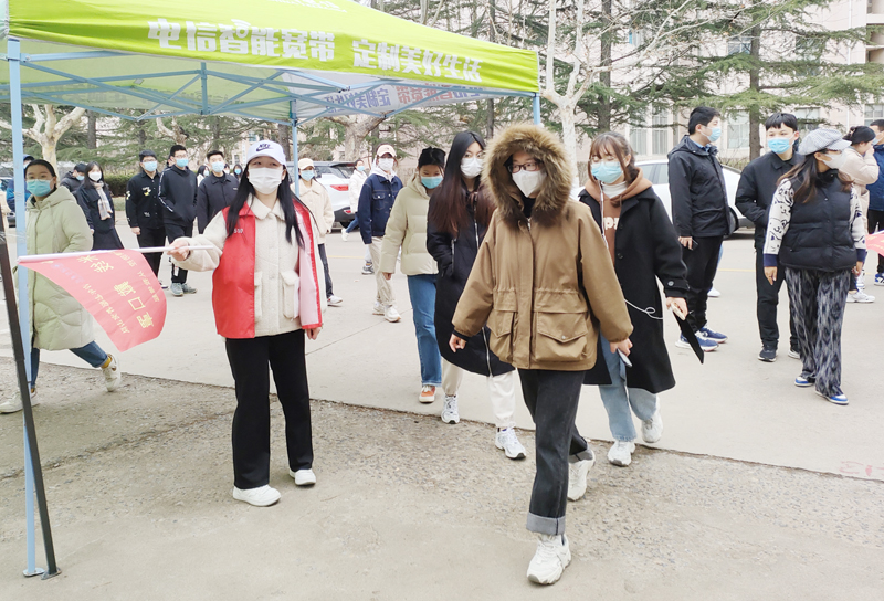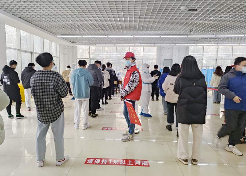 本网讯 “大家拿好手机,扫码登记,提前准备好二维码,保持一米的安全距离……”“请大家戴好口罩,保持安静,这样才能保护好自己……”这是物理与电子信息学院学生党支部党员突击队,在3月17日的核酸检测现场,耐心地提醒着参加检测的同学们。