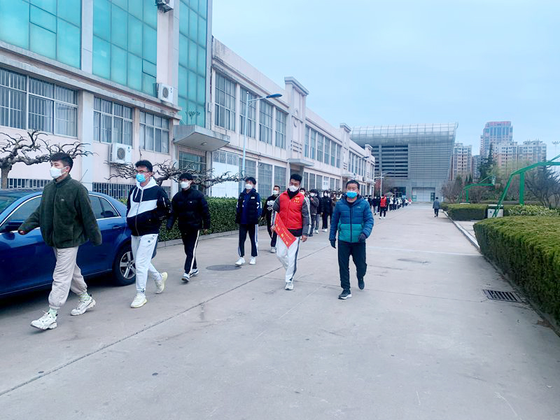 在核酸检测现场,体育学院疫情防控学生干部先锋队全部到岗,各班级有组织、有纪律地在体院小广场集合后,在志愿者的指挥引导下,有序进入风雨篮球馆进行核酸检测。志愿者们时刻提醒同学们“保持1米线,有序排队,准备好信息采集二维码”,有效提高了检测效率。