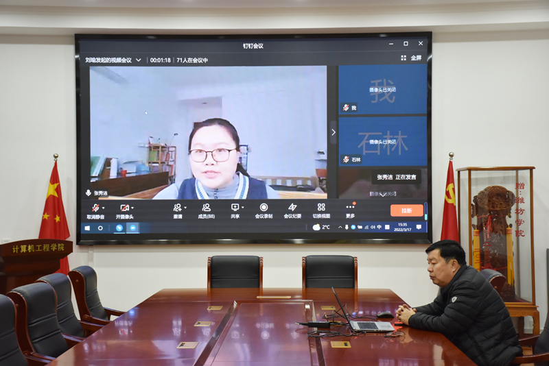 本网讯 3月17日下午3点,计算机工程学院一场确定已久的考研辅导会议以钉钉视频会议的形式开启,10余名博士教师,70余名备考的大四学生共同参加,该院党总支书记张晓静、院长王成端旁听。