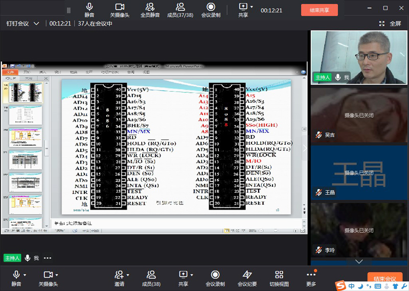 周建梁老师讲授《微机原理与接口技术》课程,利用钉钉的在线课堂授课。不定时进行课堂签到,查看学生的听课认真情况;随堂测试,发布选择题,考查学生的知识掌握以及听讲情况;互动形式多样,大大提高学生的上课积极性和参与性。