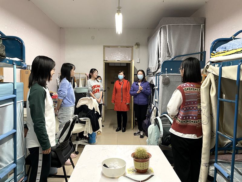 宿舍走访过程中,老师与同学们亲切交流,就生活、学习、就业等多方面进行了指导,全方位了解学生的身心健康状况。周莹和李梅霞叮嘱同学们在特殊时期要做好个人防护,提高疫情防控意识,严格遵守学校疫情防控管理规定,确保人身安全。同时,对同学们的线上学习情况进行了调研,全面了解同学们的学习情况及需要解决的问题,确保线上学习不掉线,教学质量不打折。郑栋鹏与临近毕业的大四学生就考研及就业情况进行了沟通交流,针对考研复试、就业形势、就业方向等方面的问题进行了细致的指导,鼓励同学们调整心态,明确自身定位,拓展就业渠道。