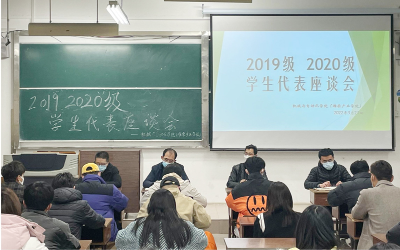 本网讯 为深入了解疫情防控校园封闭管理期间学生思想动态、线上教学、身心健康等情况,及时有效地为同学们提供更加优质的服务,机械与自动化学院(潍柴产业学院)分别于3月21日下午和晚上组织召开了各年级学生代表座谈会。党总支书记杨守忠、驻校辅导员及学生代表共107人参加了座谈,会议由党总支副书记冯道俊主持。