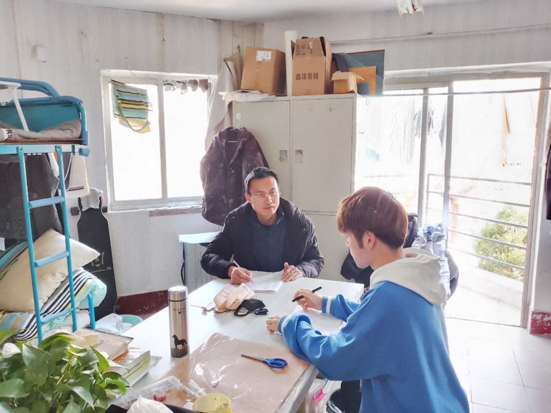 李晓鹏老师在学校主要负责确认核酸检测名单等数据上报工作和学生宿舍安全、学生心理辅导等工作。每天早上6:00起床就开始前往学生宿舍查看大功率电器等违禁用品使用状况,以及宿舍防火安全状况等。之后就不断往返于核酸检测现场进行指挥与安排。在此期间,他还要对同学们的心事和情绪进行耐心倾听和疏导。忙到夜半时分,再次仔细巡查完宿舍安全后,才匆匆回到寝室得以休息。“每一项工作都需要仔细和耐心,尤其是核酸检测数据,不能出现任何的纰漏。只有把工作做好了,我才能够安心休息下来。”李晓鹏老师说道。