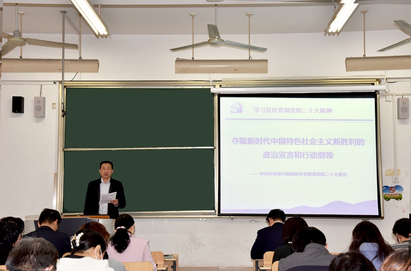 卢运山从“新时代十年的伟大变革,做到‘两个结合’、坚持‘六个必须’,贯彻新发展理念推动高质量发展,矢志不渝推进法治建设,新时代党的建设伟大工程”等几个方面,对党的二十大进行了要点宣讲和解读。强调党的二十大是在全党全国各族人民迈上全面建设社会主义现代化国家新征程、向第二个百年奋斗目标进军的关键时刻召开的一次十分重要的大会。习近平总书记所作的报告,是党团结动员全党全国各族人民夺取中国特色社会主义新胜利的政治宣言和行动纲领,是马克思主义的纲领性文献。党的二十届一中全会选举产生新一届中央领导机构,习近平同志任中共中央总书记、中央军委主席,这是全党的选择、人民的选择、历史的选择,必将为实现中华民族伟大复兴提供坚强组织保障。全院上下一定要把学习宣传和落实党的二十大精神作为当前和今后一个时期的重要政治任务。要通过学习和把握,深刻领会“两个确立”的决定性意义,牢记“国之大者”,增强“四个意识”、坚定“四个自信”、做到“两个维护”。